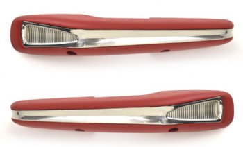 These are the correct front arm rests as found in the 1963-1964 Ford Falcon Futura and Sprint models. The stainless steel inserts are included. They are sold in pairs to assure the colors match from side to side. They are available in Black and Red.